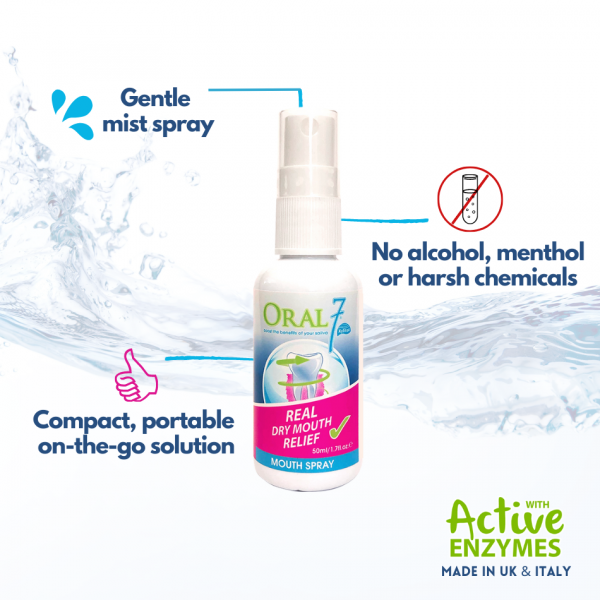 The Oral Seven (Oral7) range of oral care products contains natural enzymes to assist the functions of healthy saliva, keeping your mouth moist and balanced, and helping to soothe & protect your mouth tissue against minor infections.