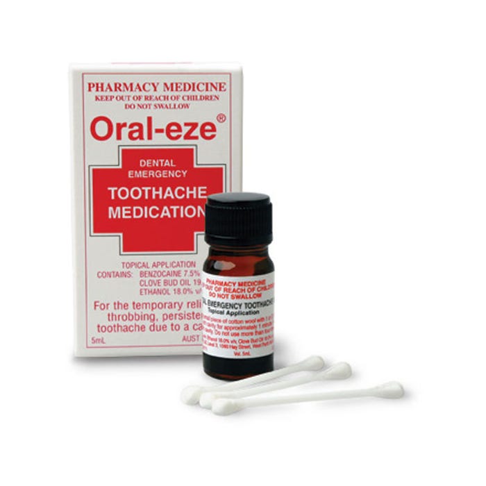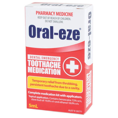 Oral-Eze Dental Emergency toothache medication acts fast to relieve toothache due to a cavity until a dentist can be seen. Toothache due to a cavity (eg. lost fillings, decay etc.) is the most common cause of toothache.