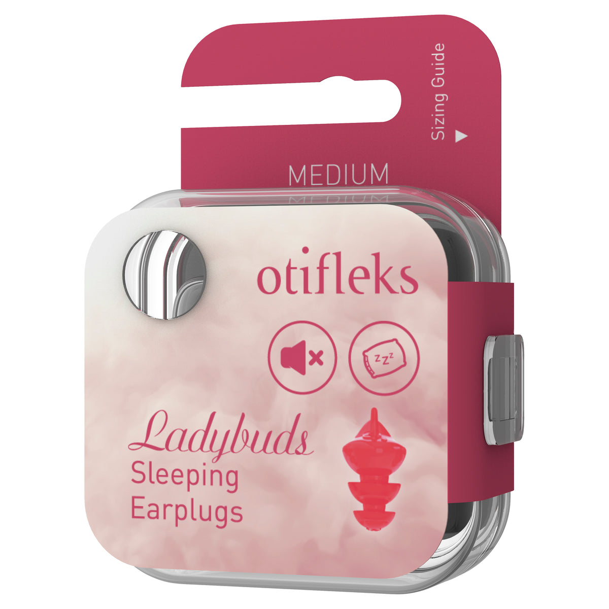Otifleks Ladybuds Earplugs are the ultimate sleeping aid for every woman. Using the softest thermo-active material for maximised comfort and sound blocking whilst you sleep. Available in 3 sizes.