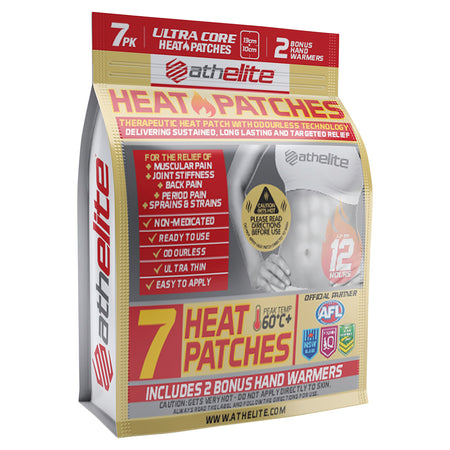 Athelite Heat Patches are air activated, open only when ready to use. Athelite Heat Patches provide targeted, sustained, long lasting & soothing pain relief of back pain, muscular aches and pains, effective relief from period pain, joint stiffness, sprains and strains. Heat therapy increases blood flow to the affected area providing oxygen and nutrients to aid the muscle healing process.