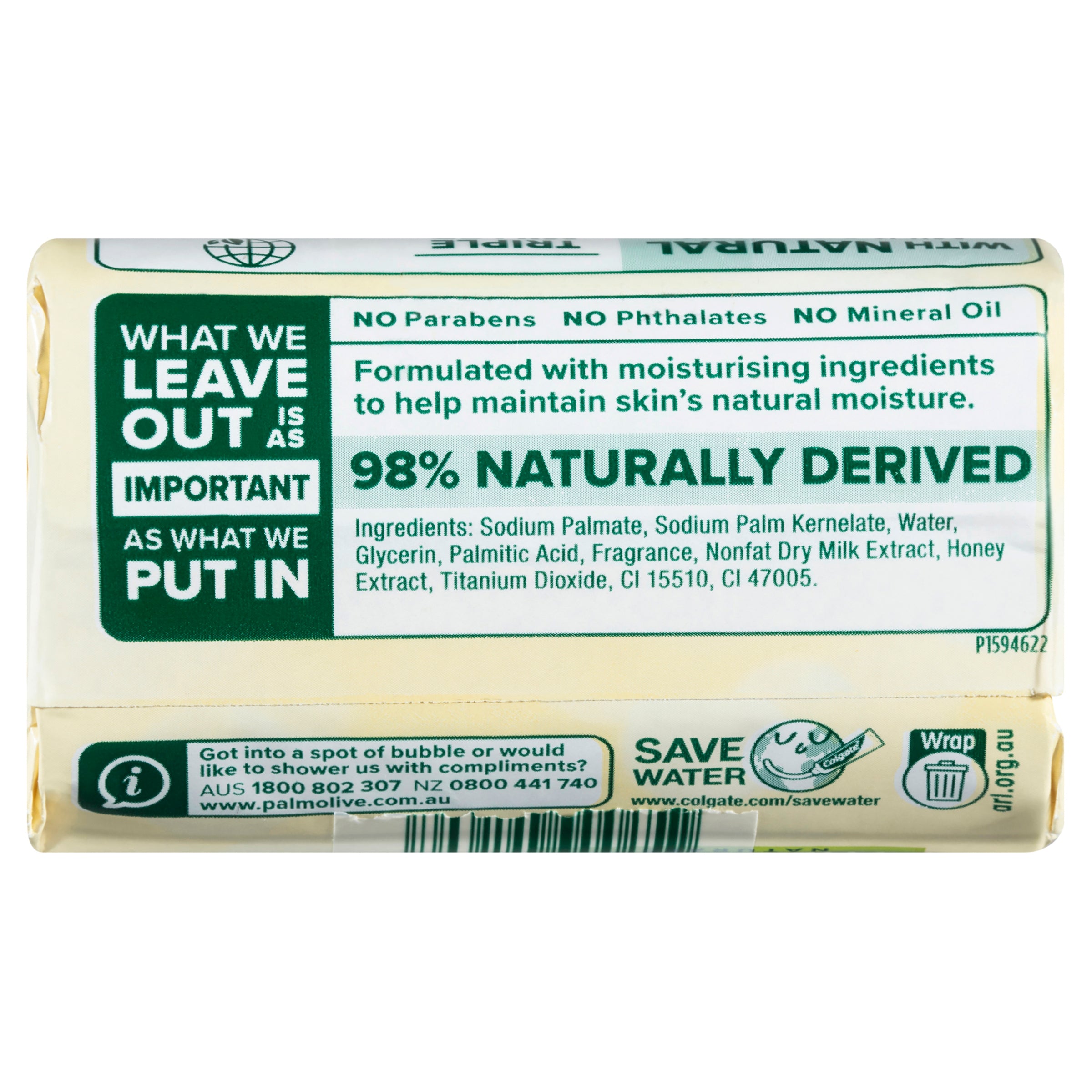 • Palmolive Naturals Replenishing Bar Soap is enriched with Milk & Honey extracts.• Gently cleanses and removes germs.