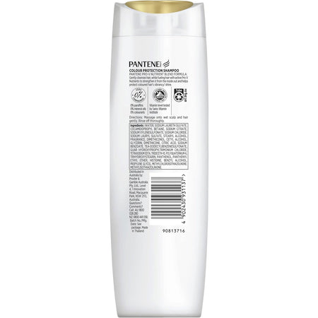 Pantene Colour Protect Shampoo 375ml helps keep coloured hair vibrant and looking its best. Its formula with antioxidants helps protect hair against damage from environmental aggressors, helping to prevent colour fading and maintaining your hair's natural richness. It helps reduce colour fading due to styling, keeping your hair colour vibrant for longer.