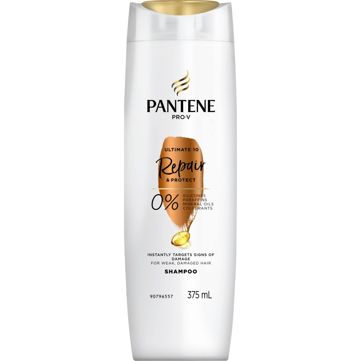 Pantene Pro-V Ultimate 10 Repair & Protect Shampoo. Instantly targets signs of damage for weak, damaged hair. Contains 10 hair health benefits in 1. Use for stronger hair down to the last CM.