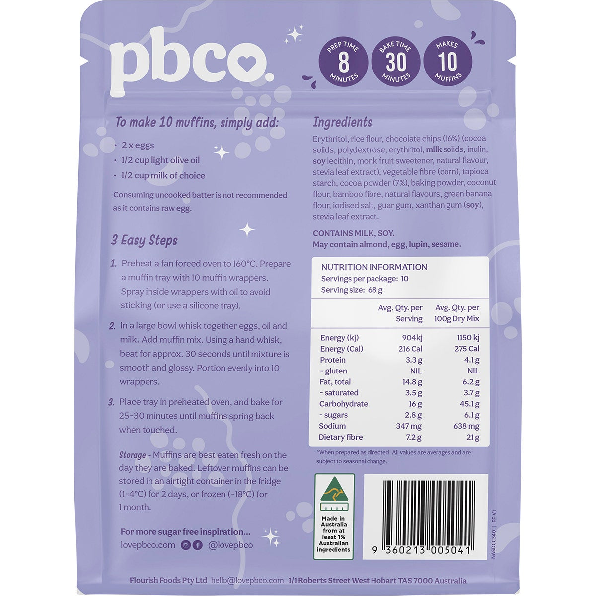 PBCO Double Choc Chip Muffin Mix 94% Sugar Free 340g