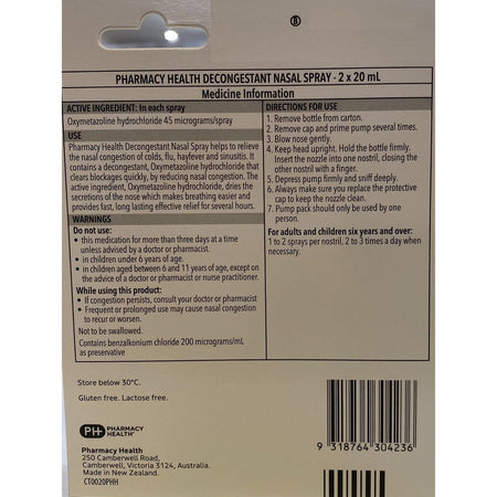Pharmacy Health Decongestant Nasal Spray Value Pack 2x20ML