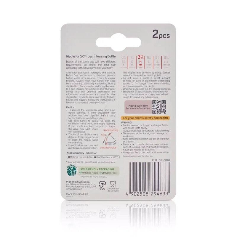 Pigeon SofTouch Peristaltic Plus Teat 3+ Wide Neck M 2 Pack