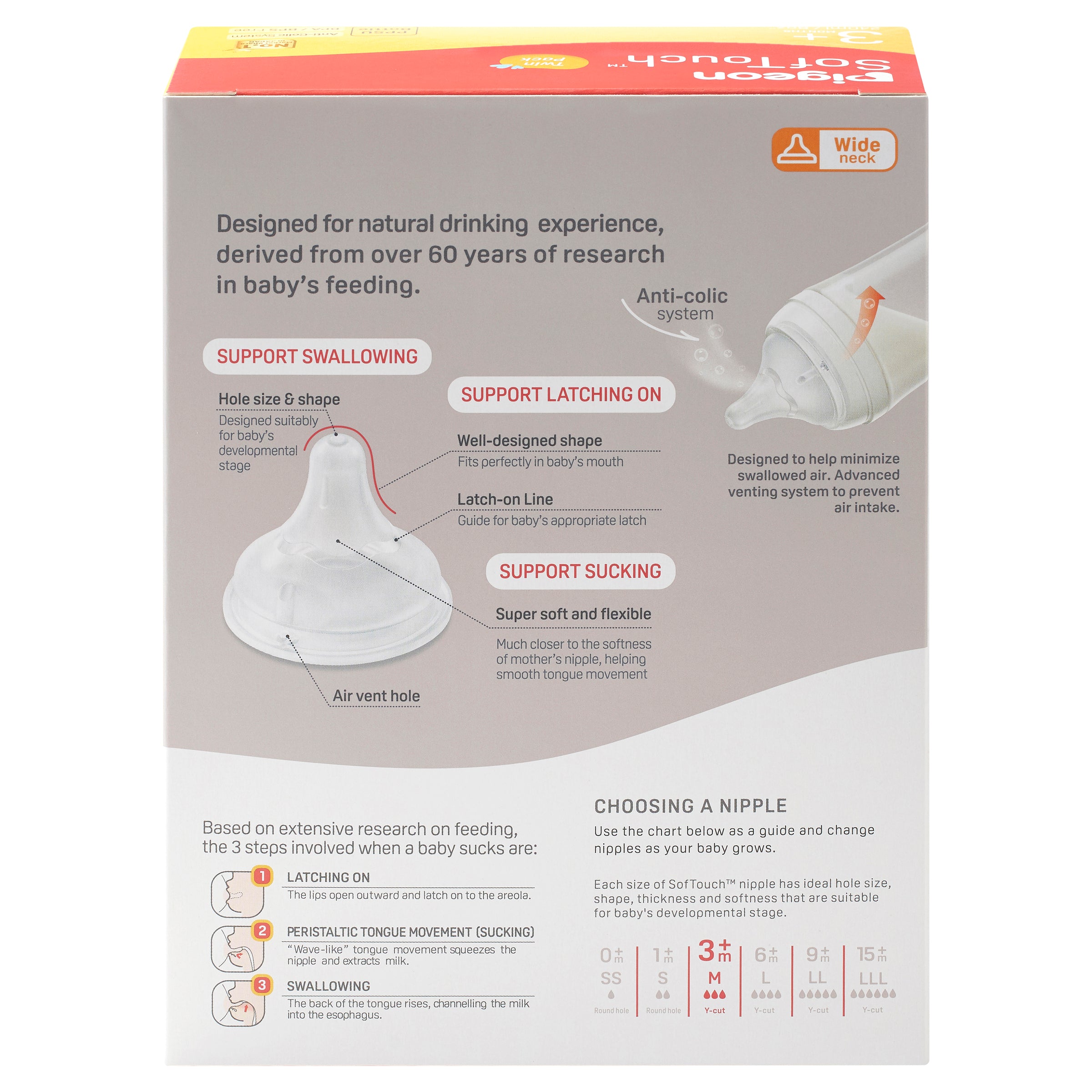 Backed by over 60 years of research into baby’s natural sucking behavior, the new upgraded Pigeon SofTouch Nursing Bottles launched in 2022 come with a research-based latch-on line for appropriate latching, and an even softer nipple that is closest to the mother’s breast.
