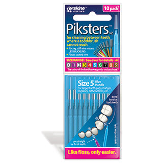 Please Note: All interdental brushes, toothpicks and sticks can put pressure on the tip of the gum, especially if you force it or use a brush that is too big for the space. This can cause a slight re-shaping of the gum over time. Use small sizes with a gentle action for cosmetic areas such as the front teeth and larger Piksters with a firmer action for the back teeth.
