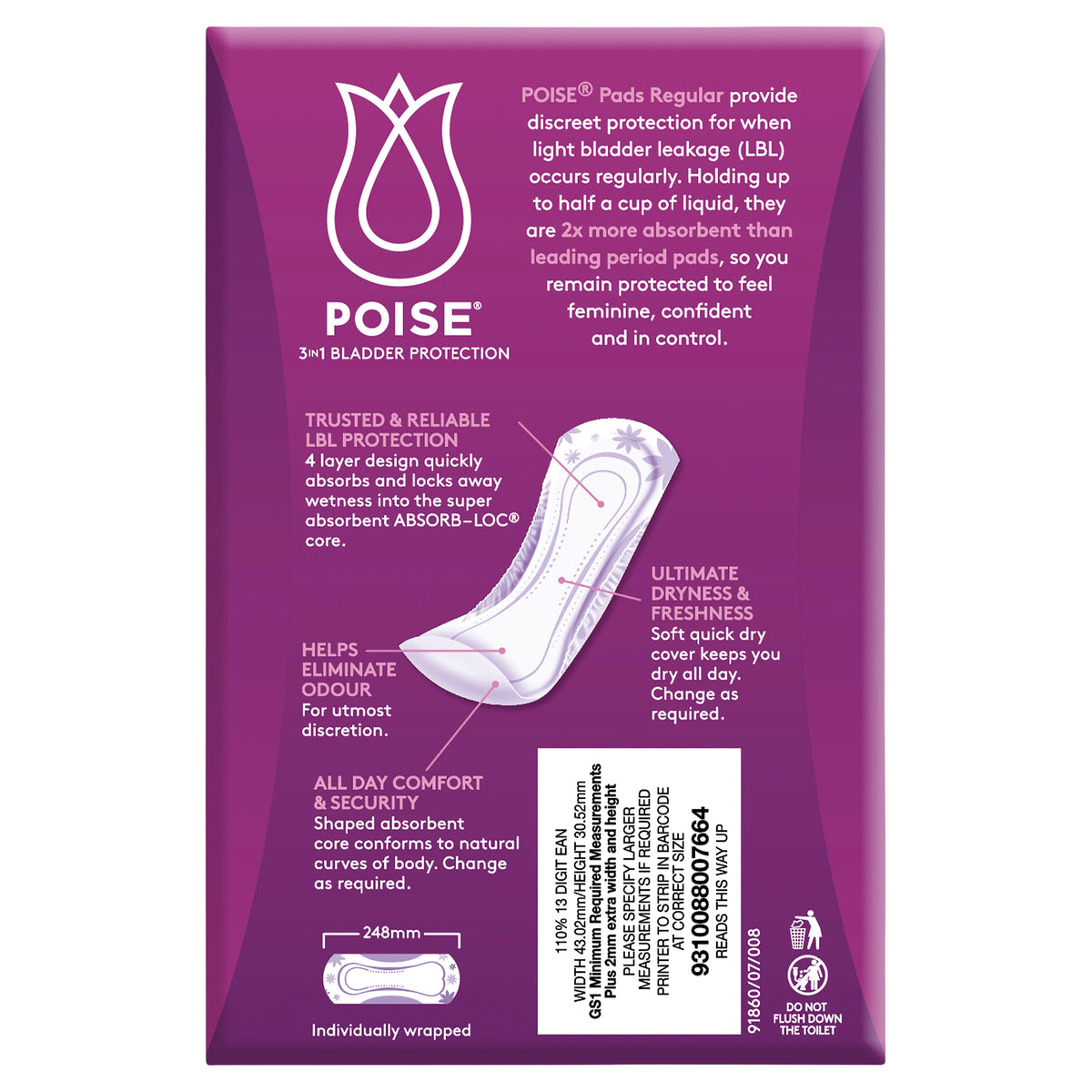 Poise Pads Regular Provide discreet protection for when light bladder leakage (LBL) occurs regularly. Holding up to half a cup of liquid, so you remain protected to feel feminine, confident and in control.