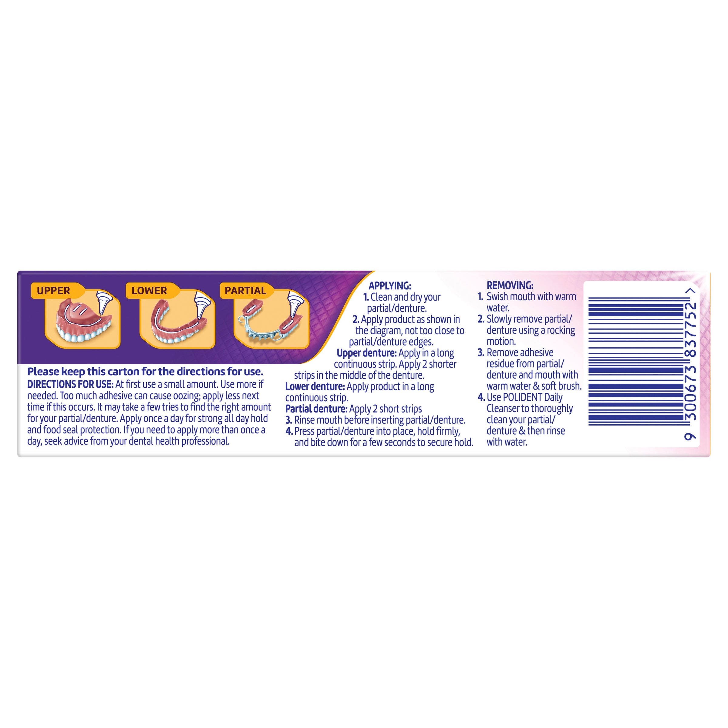 Polident Max Seal Denture Adhesive Cream wit max seal precision nozzle to help form an all-around seal. Also has the same formulation as Polident Flavour Free Denture Adhesive Cream.
