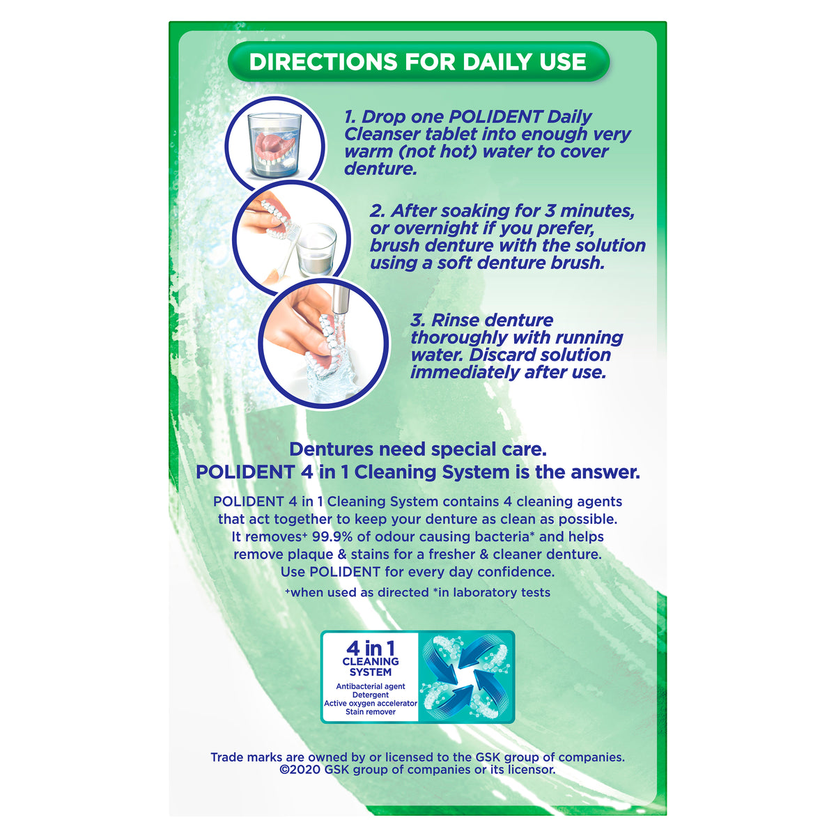 Dentures are not like natural teeth, that's why they need daily special care. Polident "4 in 1" cleaning system contains 4 cleaning agents that act together helping to keep your denture as clean as possible.