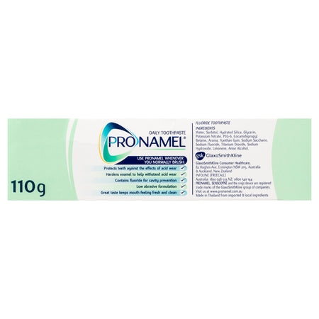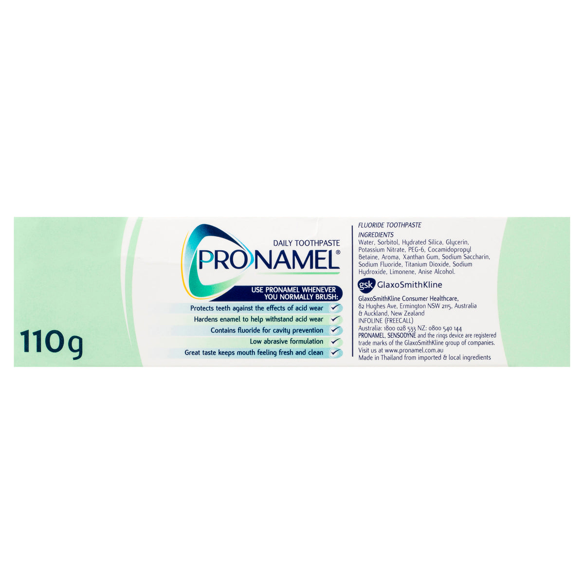 Pronamel Daily Protection Enamel Toothpaste is specially formulated to protect teeth against the effects of acid wear*. It contains fluoride and provides all the benefits of a regular toothpaste while gently removing stains to help restore teeth to their natural whiteness.