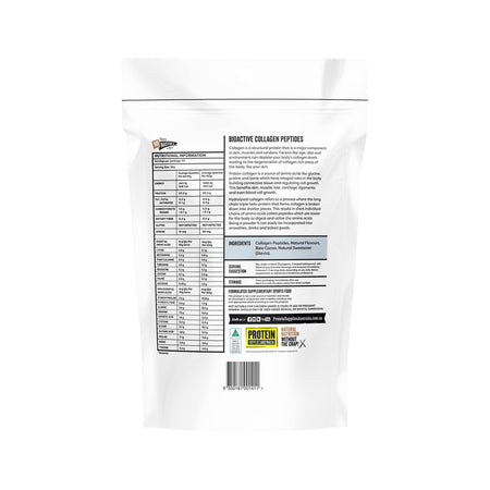 The word 'Hydrolysed' refers to a process where the long chain triple helix protein that forms collagen is broken down into shorter pieces. This results in short individual chains of amino acids called peptides which are easier for the body to digest and utilise the amino acids. Being a powder it can easily be incorporated into smoothies, drinks, soups, and baked goods.Collagen Powder, Natural Flavours, Organic Raw Cacao Powder (3.6%), Natural Sweetener (Stevia).Serving Size: 30gThis product is not a sole source of nutrition and should be consumed in conjunction with a healthy nutritious diet and appropriate physical training or exercise program.