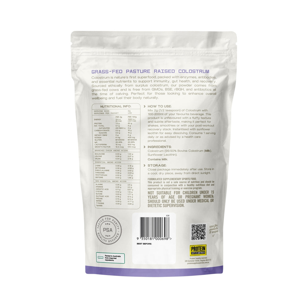 PROTEIN SUPPLIES AUSTRALIA Colostrum (Grass Fed) Pure - 20% Immunoglobulin (IgG) 200g