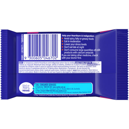 Chewy QUICK-EZE Forest Berry Flavour antacid tablets help provide rapid relief from heartburn and acid indigestion by neutralising stomach acid fast. Proudly made in Australia, Chewy QUICK-EZE Forest Berry Flavour antacid tablets contain active ingredient Calcium Carbonate, and no artificial colour...