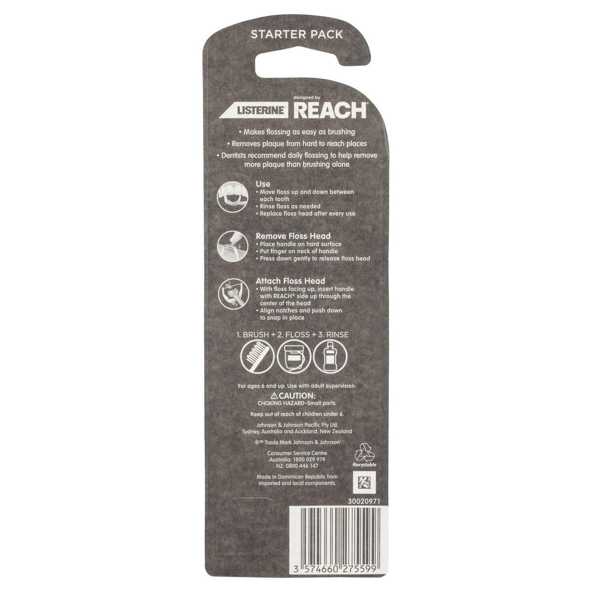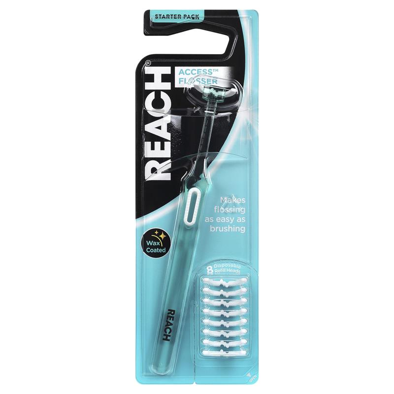 REACH® ACCESS FLOSSER STARTER PACK with 8 disposable waxed refill heads. Makes flossing as easy as brushing.