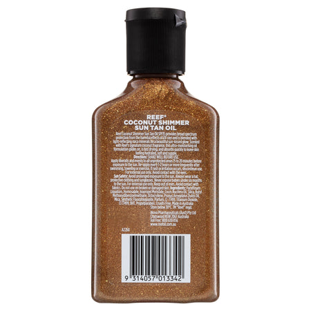 Reef Coconut Shimmer Sun Tan Oil SPF15 provides broad spectrum protection from the harmful effects of UV rays and is blended with light-reflecting mica minerals for a beautiful sun-kissed glow.Â