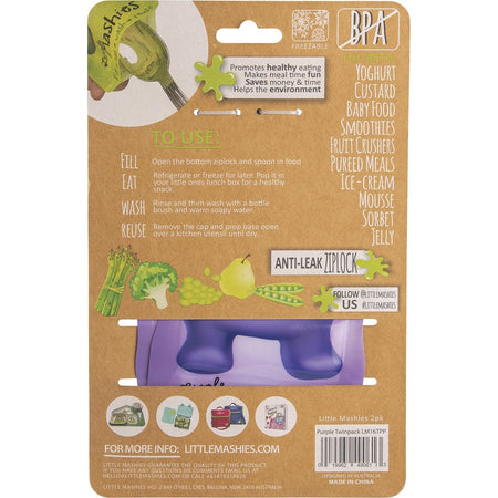LITTLE MASHIES Reusable Squeeze Pouch Pack of 2 - Purple - 2x130ml.LT13CPP