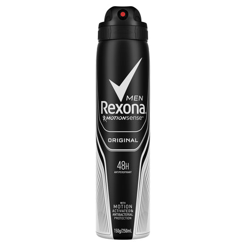 Rexona's Original antiperspirant deodorant aerosol provides men with protection against sweat and wetness for up to 48 hours. Our products are intelligently designed to work as hard as you do. We make it our business to know more about sweat, and what we learn informs every product innovation. Sweat, also known as perspiration, is a normal and healthy bodily function and it starts to occur just a few months after birth. We mainly sweat to cool our bodies down, a process called thermoregulation. Our brain sends a signal to over 3 million glands in our body to release sweat (a clear fluid made of water, salts and proteins). As this fluid evaporates from our skin, it lowers our body temperature. On https://www.rexona.com/au you'll find lots of helpful information about how to stop sweat and how Rexona can help. Rexona entered the world of professional sports, backing some of the world's best sports men and women. To this day, Rexona continues to provide ultimate protection at even the busiest of times. Rexona was created in Australia in 1908 by Mrs Alice Sheffer, the wife of SF Sheffer, the founder of the Sheldon Drug Company. A talented physician, she wanted to give people a new kind of personal care product, with effective ingredients that also smelt good. When Rexona hit the shelves in 1908, it soon became the company's biggest sellerBoxed Contents: 250ml