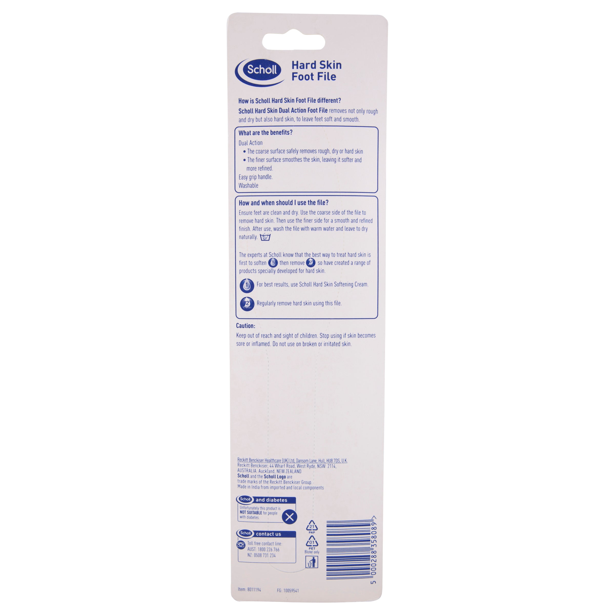 Scholl Hard Skin Dual Action Foot File removes not only rough and dry but also hard skin, to leave feet soft and smooth.
