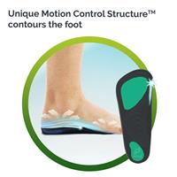 All of our orthotic insoles have a Motion Control Structure: The right shape and combination of materials to provide extra support to specific areas of the foot.