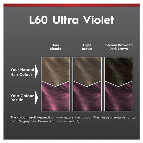 Schwarzkopf Brilliance Luminance L60 Ultra Violet provides lightening and colouring in just one step for fashionable colour, even on dark hair.