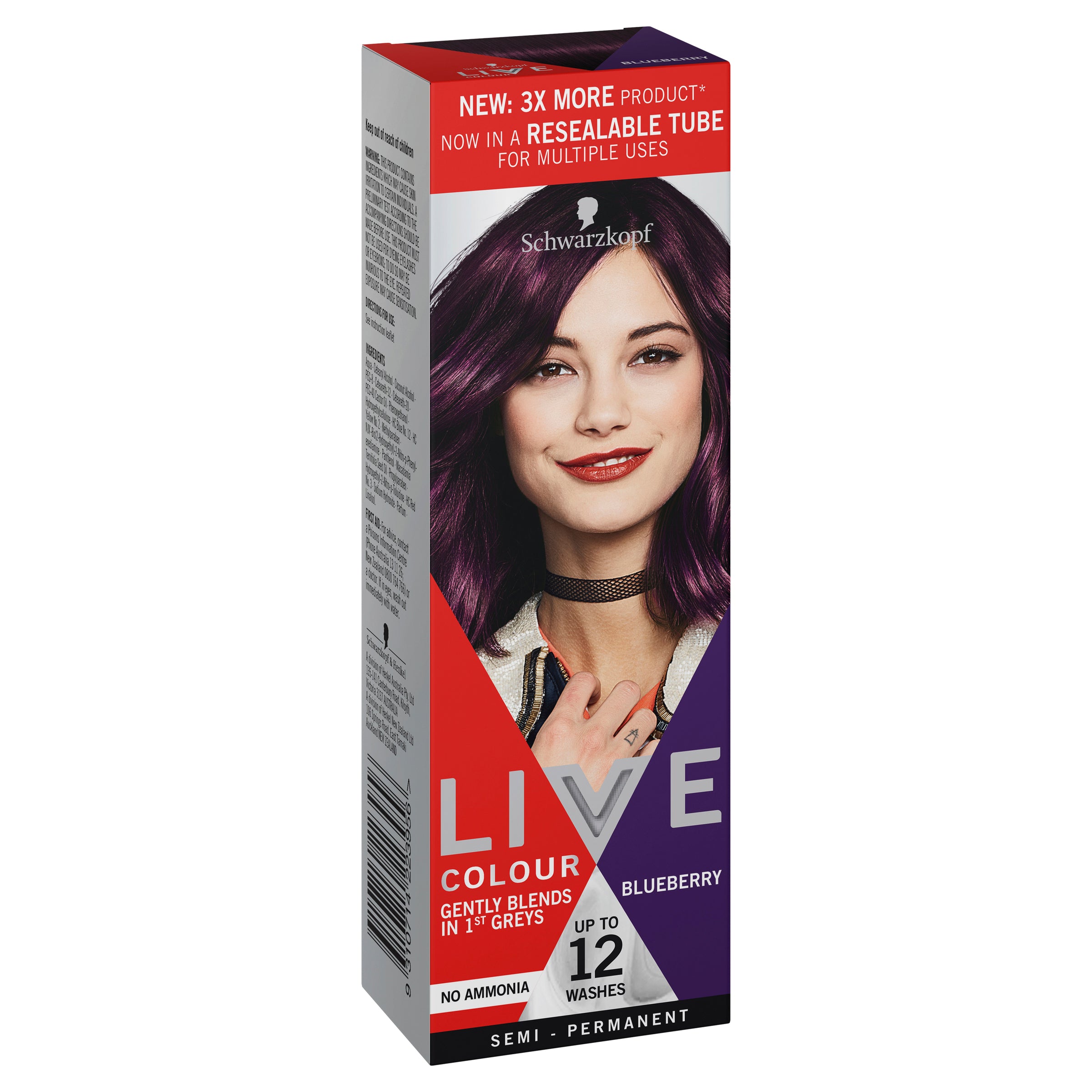 • As LIVE Colour is a semi-permanent hair colour, it does not contain ammonia, peroxide or resorcinol.