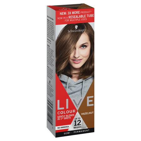 Schwarzkopf LIVE Colour Hazelnut 75ml with gentle ammonia-free colour mask for superior condition, shine and rich tones.