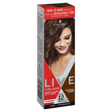 Schwarzkopf LIVE Colour Natural Brown 75ml with gentle ammonia-free colour mask for superior condition, shine and rich tones.