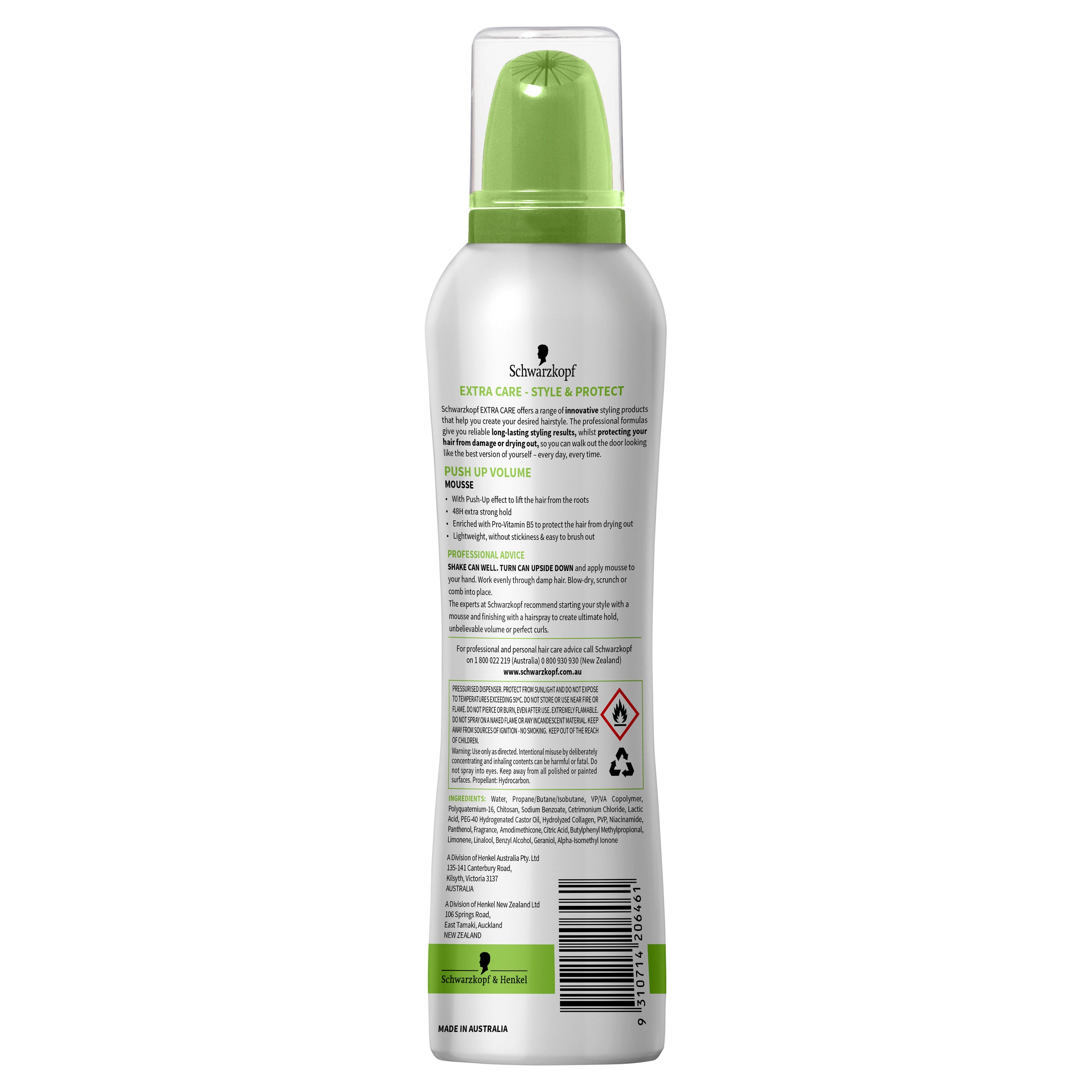 Schwarzkopf Extra Care Push Up Volume Mousse is a leave-in treatment which gives a push up effect for maximum volume from the roots that holds all day long.