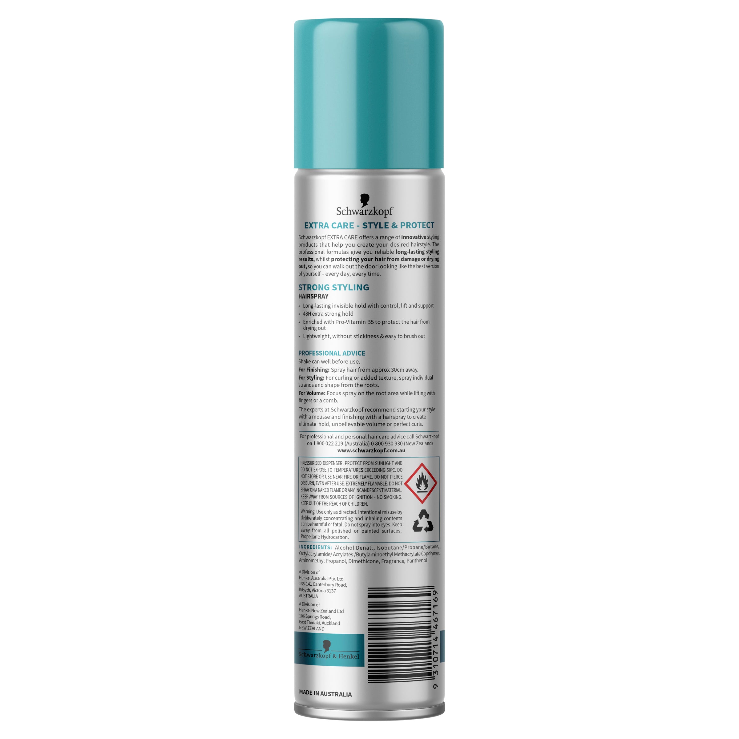 Schwarzkopf Extra Care Hairspray Strong provides your hair with long-lasting hold, lift and support.
