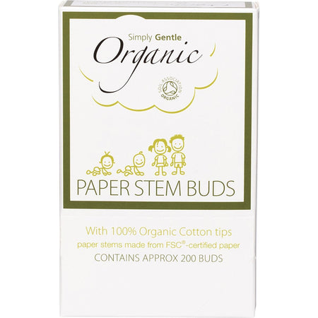 SIMPLY GENTLE ORGANIC Paper Stem Buds 100% Organic Cotton Tips 200
