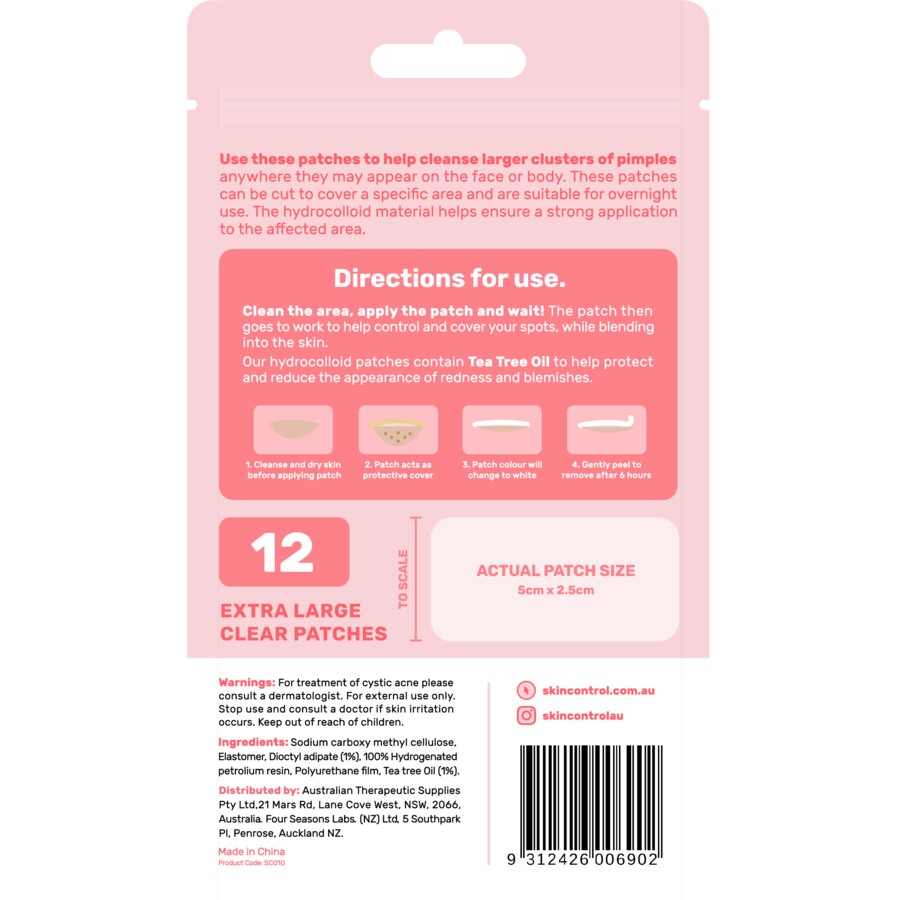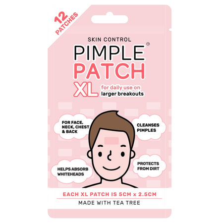 Pimple Patch XL contains 12 patches that are 5cm x 2.5 cm in size, for cleansing larger clusters of pimples.