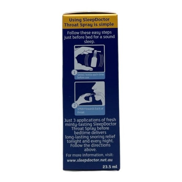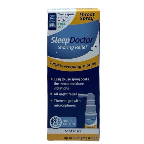 SleepDoctor Throat Spray helps target everyday snoring. This easy-to-use spray coats the throat to reduce vibrations.