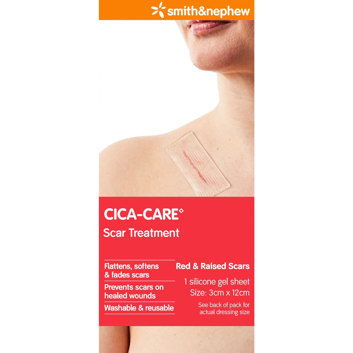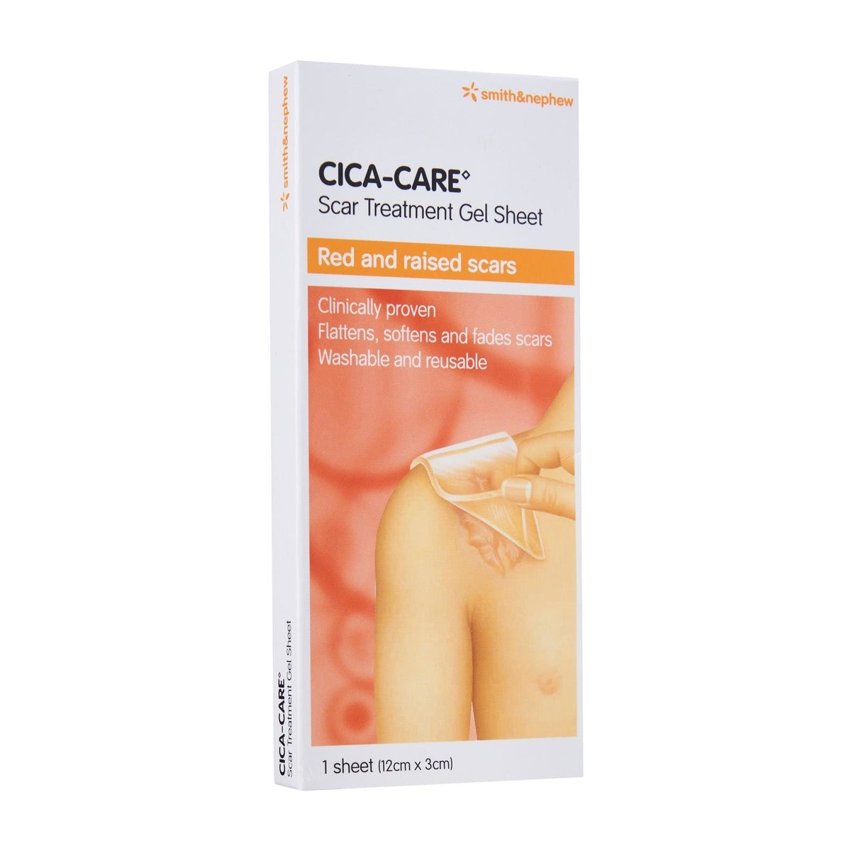 Smith Nephew Cica-Care Scar Treatment Gel Sheet 3cm x 12cm is a self-adhesive silicone gel sheet that is medically proven to be up to 90 percent effective in the improvement of red, dark or raised scars.