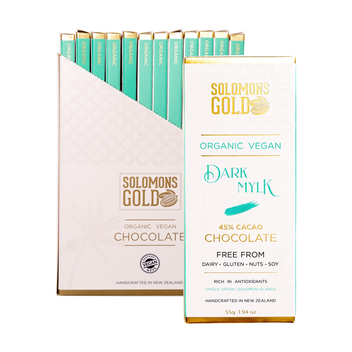 Solomons Gold Organic Vegan Dark Mylk Chocolate (45% Cacao) 55g(Pack of 12)