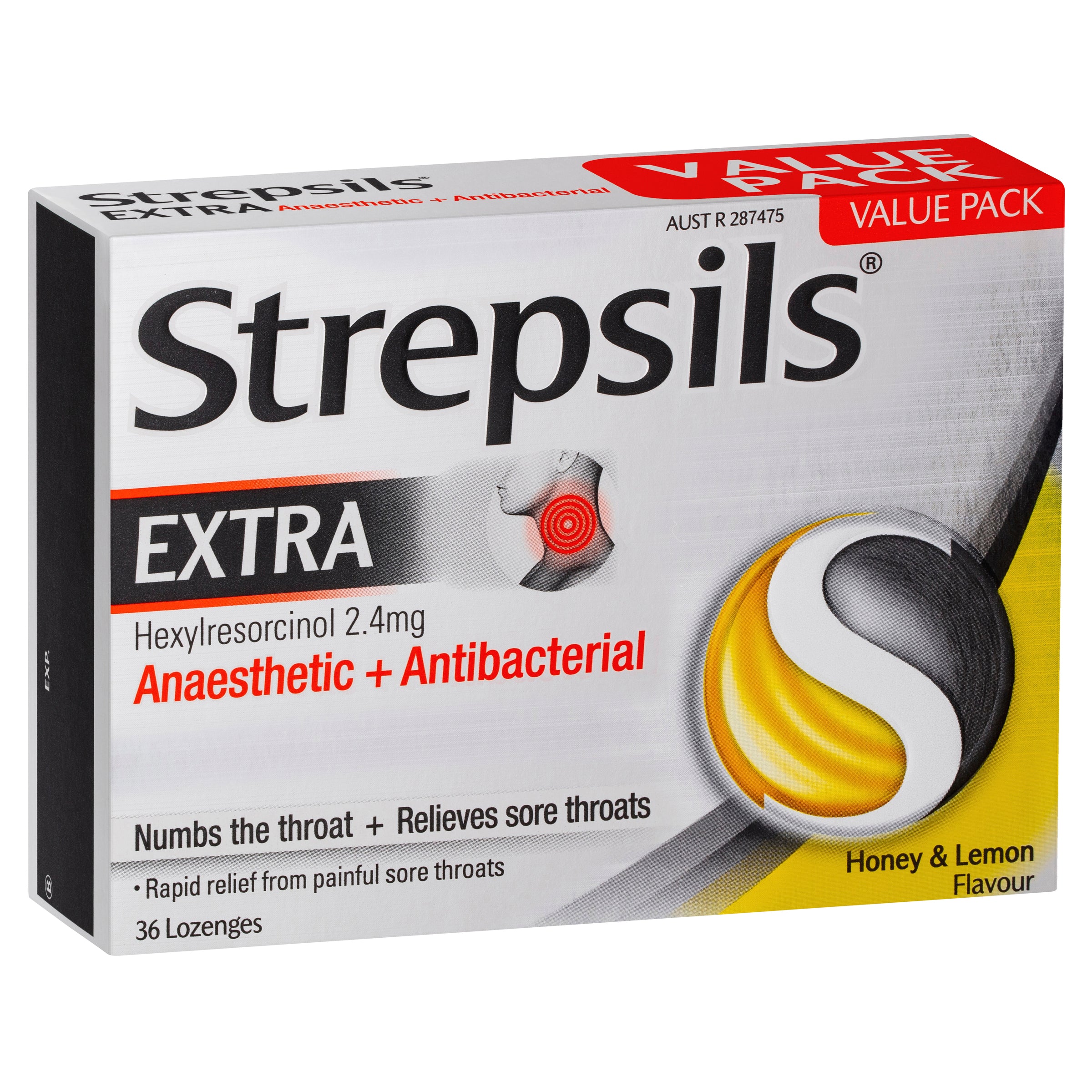 Go beyond our regular lozenges with NEW Strepsils EXTRA Honey & Lemon. It is an advance formula that doesn't just have Antibacterial Action, it also numbs the pain of inflamed sore throats.For rapid relief from painful sore throats try NEW Strepsils Extra Honey & Lemon.