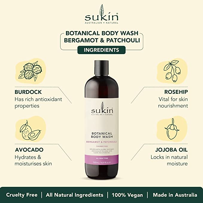 Sukin Botanical Body Wash Bergamot & Patchouli 500ml