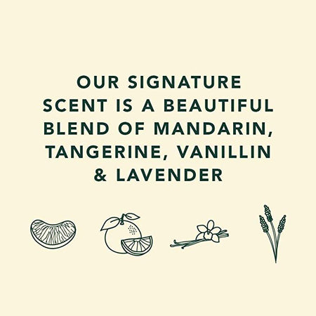 Aromatherapeutic essential oils of tangerine, mandarin, lavender and vanilla extract will leave you smelling and feeling fresh and clean.