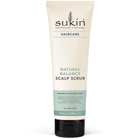 APPLICATION: SECTION DAMP HAIR AND APPLY PRODUCT TO SCALP, MASSAGING IN A CIRCULAR MOTION TO EXFOLIATE. CONTINUE TO SECTION HAIR AND REPEAT UNTIL SCALP IS COVERED. RINSE THOROUGHLY AND FOLLOW WITH SUKIN NATURAL BALANCE SHAMPOO. USE ONCE OR TWICE WEEKLY.