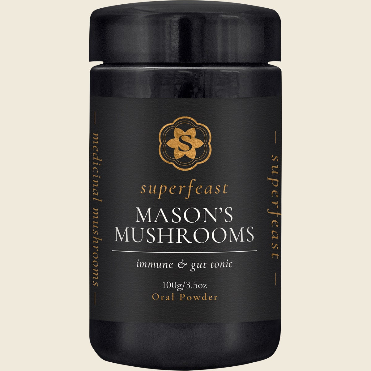 Superfeast Mason's Mushrooms 100g are a powerful blend of medicinal mushrooms, including reishi, chaga, and shiitake. With potent anti-inflammatory and immune-boosting properties, this adaptogen blend supports overall wellness and vitality. Add it to your daily routine for optimal health benefits.