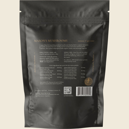 Boost your health with Superfeast Mason's Mushrooms 250g. This premium blend contains a potent mix of medicinal mushrooms that support your immune system and promote vitality. With 250g of pure, organic mushrooms, you can enjoy the powerful health benefits these superfoods have to offer. Try it today!
