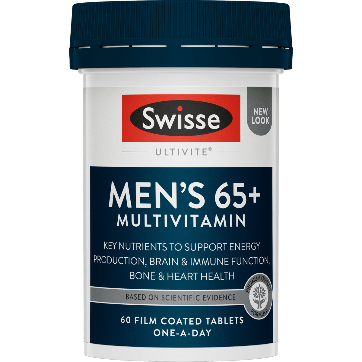 SWISSE ULTIVITE MEN'S 65+ MULTIVITAMIN is a premium quality formula containing over 40 vitamins, minerals, antioxidants and herbs tailored for men 65 years and over. It supports energy production, healthy brain and immune function, bone health, heart health, eyesight and the body's natural response to stress.Size: 60 Tablets