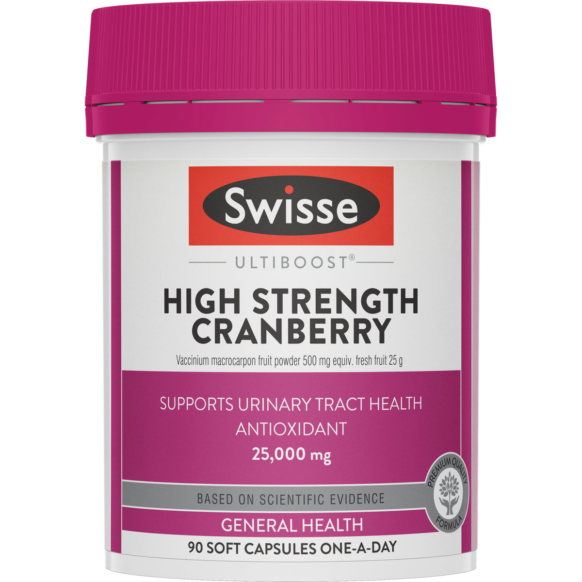 Swisse Ultiboost High Strength Cranberry contains a premium quality ingredient to help support urinary tract health.