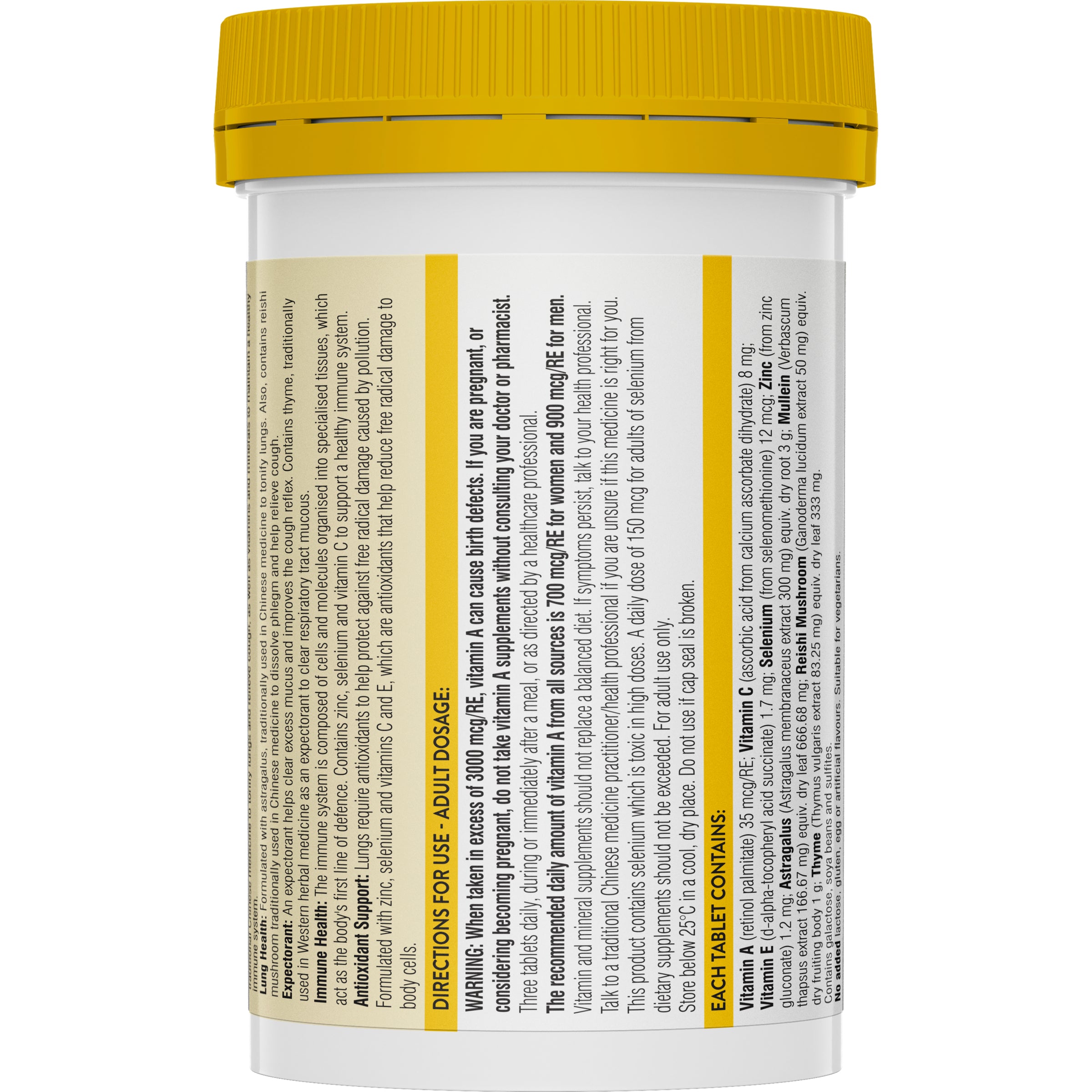 Antioxidant Support: Lungs require antioxidants to help protect against free radical damage caused by pollution. Swisse Ultiboost Lung Health Support is formulated with zinc, selenium and vitamins C & E, which are antioxidants that help protect cells from potential free radical damage.
