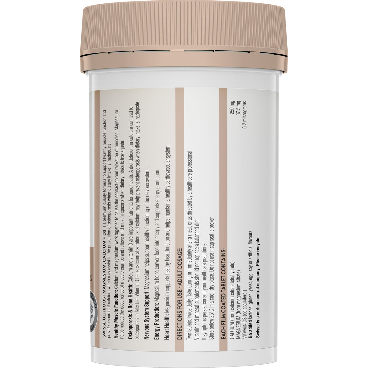 Swisse Ultiboost Magnesium, Calcium + D3 has been formulated based on scientific evidence to provide three beneficial nutrients in a convenient dose.