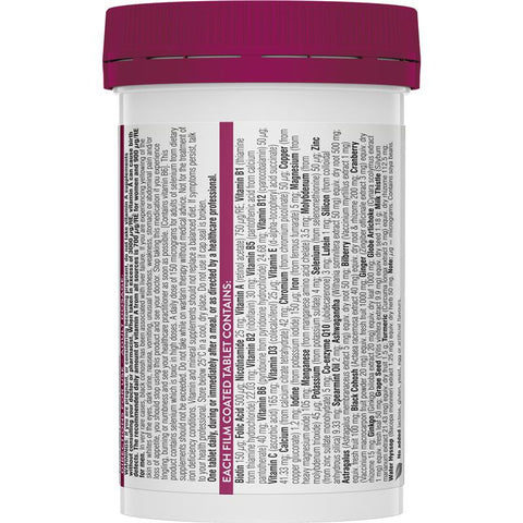 • Contains 39 premium quality vitamins, minerals, antioxidants, and herbs.• Formulated for women aged 50 years and over.