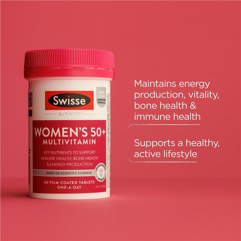 Swisse Ultivite Women's 50+ Multivitamin is scientifically formulated to provide a comprehensive blend of vitamins, minerals, and herbs to support a healthy, active lifestyle. Tailored specifically for women 50 years and over, this multivitamin supports immune health, healthy bones, and energy production and helps prevent dietary nutritional deficiencies.