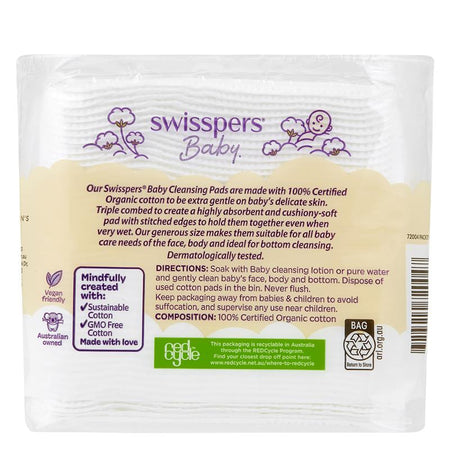 Our Swisspers Baby Cleansing Pads are made with 100% Certified Organic cotton to be extra gentle on the baby's delicate skin.