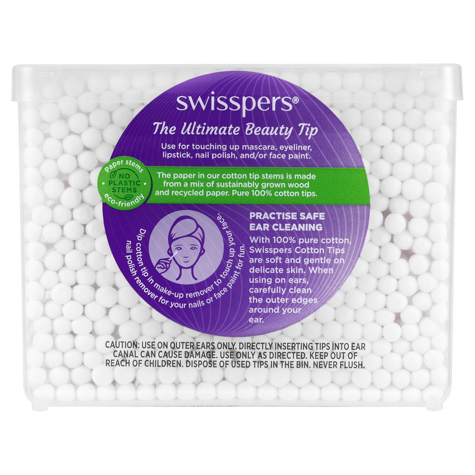 The paper in our Cotton Tip stems is made from a mix of sustainably grown wood and recycled paper. Pure 100% Cotton Tips.With 100% pure cotton, Swisspers Cotton Tips are soft and gentle on delicate skin. When using on ears carefully clean the outer edges around your ear.